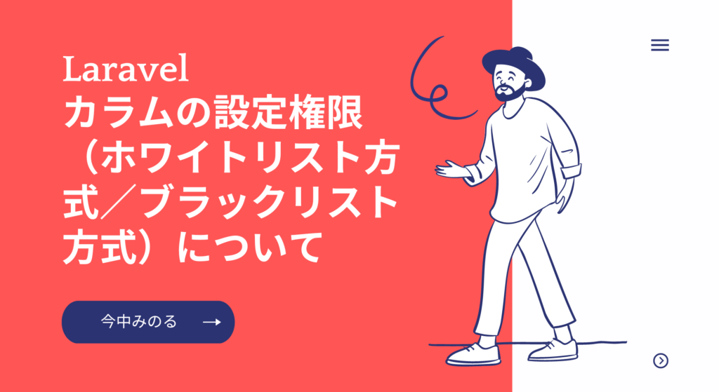 概要 テーブルに対して、複数の値を代入する場合は、悪意のあるユーザが、HTTPリクエストでどんな値を挿入するのかが分からないため、Eloquentではデフォルトで複数代入の脆弱性から保護されています。※複数代入=crea