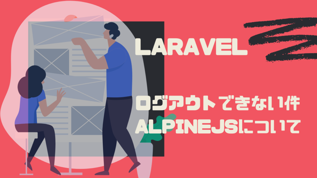 ログアウトの箇所はlaravel/breezeのデフォルトで「alpinejs(アルパイン)」を利用しています。